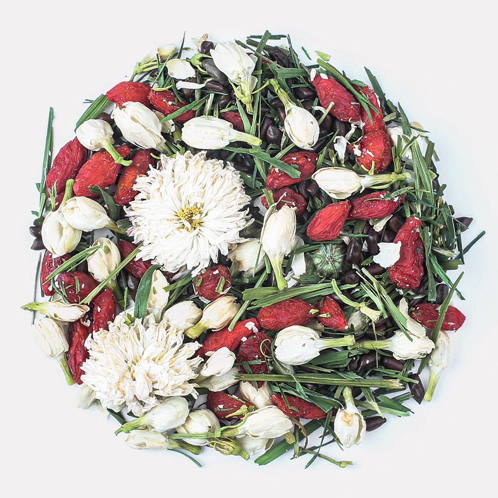 A CUP OF CHRYSANTHEMUM, CASSIA SEED, AND GOJI BERRY TEA IS LIKE THE WARMTH OF AUTUMN SUNSHINE CRUSHED INTO PIECES AND THE FRESHNESS OF MORNING DEW SOAKED INTO THE CUP, UNFOLDING INTO THE MELLOW AFTERTASTE OF TIME. EVERY SIP CONTAINS THE WHISPERINGS OF PLANTS AND TIME.